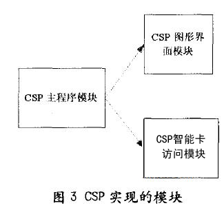 將CSP的實現(xiàn)分為3個模塊:CSP主程序模塊、CSP圖形界面模塊、CSP智能卡訪問模塊
